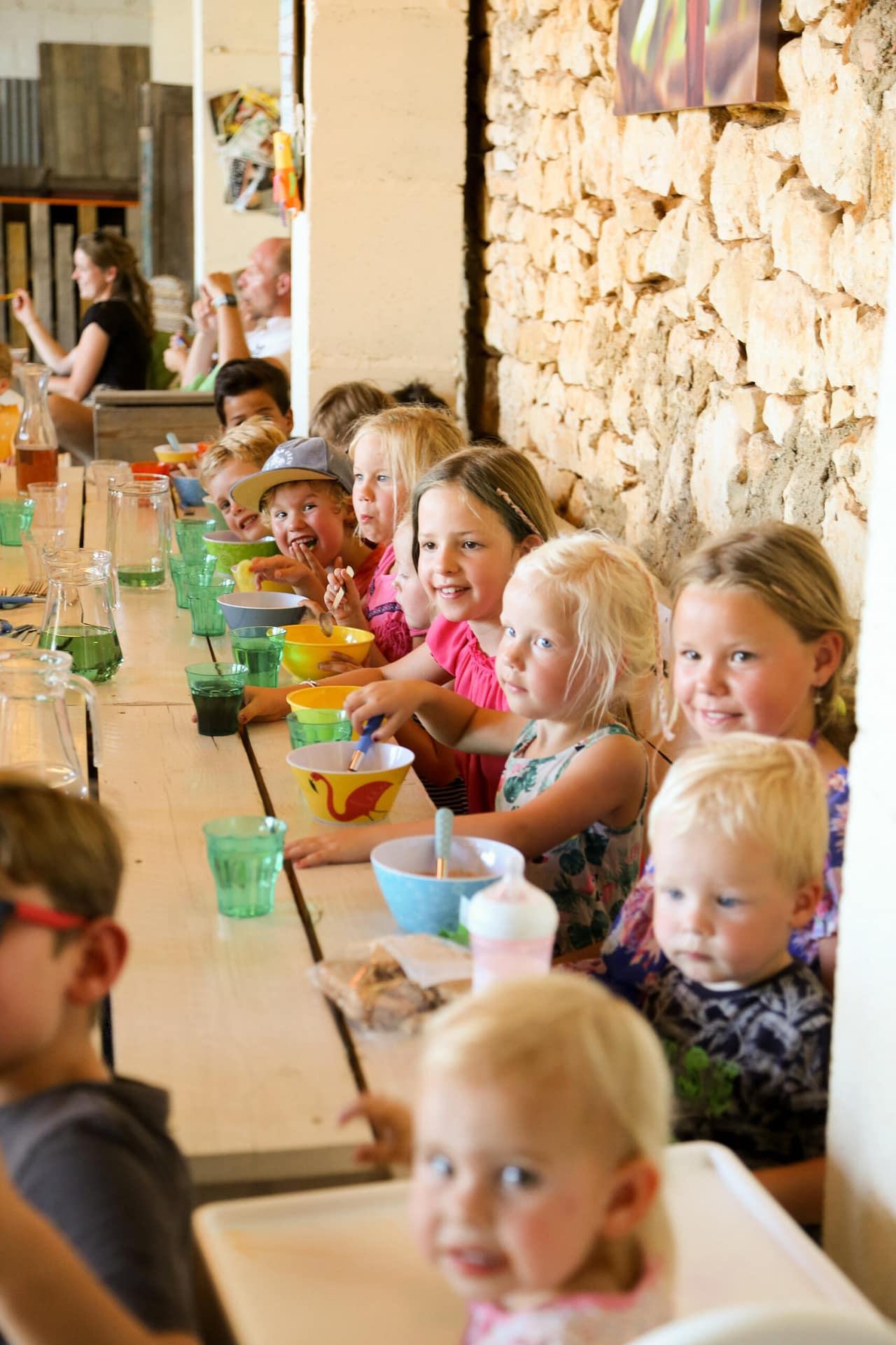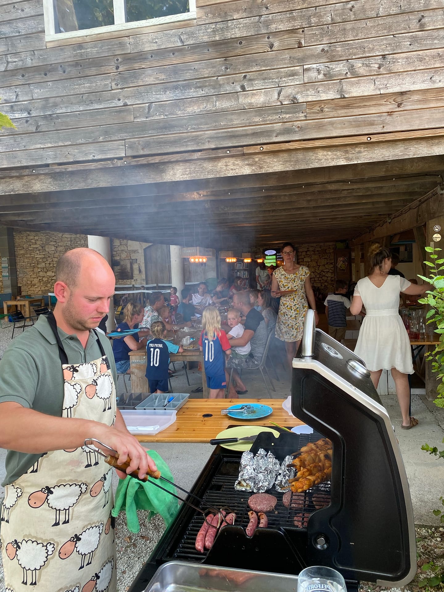 In het hoogseizoen wordt er op de aankomstdag (zaterdagen) een BBQ georganiseerd. Nadat iedereen is gesetteld kun je gezellig aanschuiven vanaf circa 18:30 uur. Zo kan er alvast kennis gemaakt worden met de andere gezinnen, en de kinderen? Die spelen al fijn samen. Op zondag, dinsdag en donderdag is er de mogelijkheid om à la carte te komen eten. We bieden een keuze aan verschillende voor-, hoofd- en nagerechten. Wij werken vooral met regionale producten, bereiden alles zelf en kunnen rekening houden met vele dieetwensen en voedselallergieën.