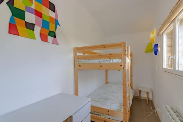 De slaapkamers liggen naast elkaar; in de ouderslaapkamer is een tweepersoonsbed (160x200cm) aanwezig en in de kinderkamer staat een stapelbed (90x200cm) en een babybed. De ramen in de slaapkamers zijn voorzien van een hor. En tevens heeft de kinderkamer luikjes voor de ramen, zodat er ook overdag heerlijk een dutje gedaan kan worden.