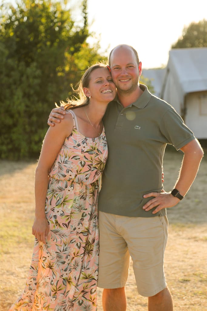Vanaf het moment dat wij elkaar 20 jaar geleden leerden kennen op de Hoge Hotelschool in Maastricht is het onze gezamenlijke droom geweest om in Frankrijk een hotel, camping of vakantiepark te beginnen. Misschien is het herkenbaar, als je eenmaal in de sneltrein van carrière maken stapt wordt het steeds moeilijker om die afslag te nemen die je zo graag in wilde slaan. Totdat we afgelopen zomer met Chris en Loes in gesprek kwamen over een mogelijke overname van Place de la Famille. Na enkele skypesessies zijn we in september gaan kijken en waren wij op slag verliefd op deze bijzondere plek. Het was niet enkel de plek maar het hele concept waarbij ontspannen, ontmoeten en ontdekken zo belangrijk zijn. Het geheel was een schot in de roos en wij wisten het, dit is onze afslag.